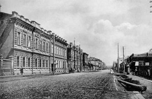 помещений. Улица перешла в ранг центральных. Пожар 24 июня 1879 года уничтожил все постройки на улице от берега Ушаковки до улицы Луговой (Марата). После этого городская дума приняла решение запретить возведение деревянных построек на линии Большой улицы и на расстоянии 10 сажень от нее. Постройки, выходящие на линию улицы, дозволялись только каменные под железной крышей. Почти все этажи зданий были отданы под торговые предприятия, типографии, кофейни, конторы фирм. Здесь находились все отделения коммерческих банков, представительства торгово-промышленных компаний, фешенебельные гостиницы, рестораны, зрелищные предприятия, редакции газет, учебные заведения. Улицу привели в порядок, замостив ее булыжником и торцовыми шашками, проложили тротуары.