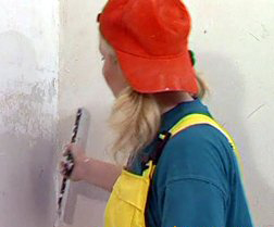 Шпатлевочная масса наносится широким шпателем под углом к поверхности стены. От размера угла зависит толщина наносимого на стену слоя шпатлевки - чем угол меньше, тем больше толщина наносимого слоя. При шпатлевании впадин и ямок шпатель следует держать под углом 30 градусов к стене.