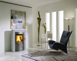 А если комната отделана в стиле модерн. Огромное свободное пространство, горки выполнены из хромированного металла и стекла, стеклянные столы, мебель так же выполнена из хромированного металла и кожи, огромные, от пола до потолка окна. В такой комнате можно устроить свой камин сочетающийся с отделкой и обстановкой. Камин по нашему мнению должен выглядеть так, хромированная или никелированная чаша, в которой будет размещаться очаг, над ним находится вторая чаша, выполненная точно так же как и очаг, которая будет являться дымоотводом. Нижняя чаша, очаг, должна стоять на помосте на небольшой ножке. Верхняя чаша нависает над нижней чашей на длиной ножке, трубе, которая в свою очередь выполняет роль дымохода. Если хотите избежать запаха продуктов горения можно всю конструкцию камина поместить в большую стеклянную трубу.
