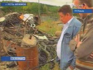 ЧП в Усть-Илимске. Там найдена радиоактивная бочка. Ее привезли в пункт приема металла с местной ТЭЦ. Сейчас специалисты решают, как утилизировать опасный груз.В тот вечер на базу, как обычно, пришла машина, полная металлолома. Вторчермет привезли с местной ТЭЦ. Груз приняли и, как того требуют правила, обследовали дозиметром. Индикатор радиоактивности сразу же зафиксировал высокое излучение.