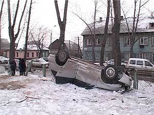 Вчера около 12.00 водитель мчался на автомобиле «Тойота-Колдина» и внезапно на перекрестке с улицей 25-го Октября машину занесло. Иномарка протаранила металлическую ограду коррекционной школы№5, въехала во двор и полностью перевернулась. К счастью, в этот момент все ученики были на занятиях, и двор пустовал. Испуганные преподаватели и школяры выбежали из школы.Все были уверены, что водитель серьезно пострадал. Однако он, покачиваясь, вылез из машины - как оказалось, серьезных травм мужчина не получил, отделался небольшими царапинами. Зато помощь врачей понадобилась второму пассажиру – 20-летнему парню, который, как позже выяснилось, получил несколько переломов. Оба мужчины были в нетрезвом состоянии.
