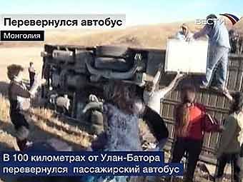 В результате аварии пассажирского автобуса с россиянами, произошедшей в воскресенье в Монголии, серьезно пострадали 20 человек, сообщает телеканал "Вести-24". Шесть пассажиров автобуса находятся в тяжелом состоянии. Автобус следовал из Улан-Удэ в столицу Монголии Улан-Батор. В ста километрах от места назначения машина потеряла управление и перевернулась. По словам одной из пострадавших, во время аварии большинство пассажиров спали.