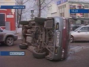 В центре Иркутска перевернулся микроавтобус