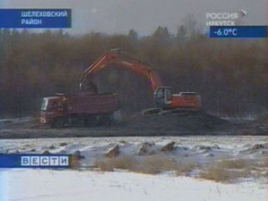 Жители села Введенщина боятся затопления. Три года назад на Иркуте одна коммерческая фирма построила эту искусственную дамбу для того, чтобы проезжать к месту добычи гравия. И с тех пор ведут здесь работы. Перерыв был в прошлом году, но в этом техника вернулась. Тогда местные и забили тревогу. Писали письма в администрацию района, природоохранные ведомства, прокуратуру. Но экскаваторы по-прежнему продолжают копать.