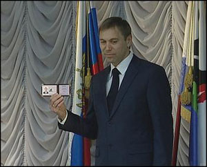 В подарок Виктору Кондрашову губернатор преподнес, по его собственному выражению, лучший презент - книгу. В ней последние комментарии к федеральному закону о местном самоуправлении. Поздравить нового мэра пришли и его бывшие коллеги по депутатскому корпусу областного парламента. А от лица народных избранников городской думы ее председатель Андрей Лабыгин подарил Кондрашову устав Иркутска в красивом бархатном переплете. На торжественной церемонии присутствовали бизнесмены, религиозные и общественные деятели города. "Неделю находясь в здании мэрии, я уже успел познакомиться со многими сотрудниками администрации города. Убедиться в их профессионализме. Надеюсь, что у нас сложится очень дружная команда. Мне будет на кого опереться в решении городских проблем", - выступил Виктор Кондрашов, мэр г. Иркутска.