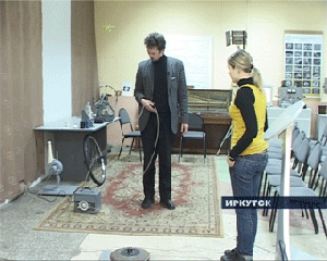 Изобретатель Константин Кравченко и сам долго нем мог понять, что же он создал. Практического применения у такого прибора нет. Зато, говорит учёный, это хорошее развлечение. Для его создания понадобилась металлическая коробка, мотор от кинопроектора и обычная двухметровая верёвка. Остальное — секрет создателей. Глядя на то, как учёные обращаются с прибором, можно подумать, что он живой. Верёвка извивается в руках как змея под дудочку. Только вот дольше пяти минут прибор не проработал. Во время нашего эксперимента — верёвка порвалась. Нужно доработать — говорит изобретатель.