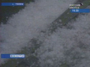 Стихия разгулялась. Накануне вечером в Тулуне прошёл сильнейший град. Куски льда повредили крыши домов, линии электропередачи, огороды и теплицы.Как рассказали очевидцы, ливень, шквалистый ветер и град в течение часа захлёстывали город. Размеры градин достигали нескольких сантиметров в диаметре. В администрацию города уже поступило 30 заявок. Люди просят помочь восстановить кровлю. Размер причиненного ущерба подсчитывается. Только что в Тулуне закончилось экстренное совещание комиссии по чрезвычайным ситуациям. Сейчас главная задача - ликвидировать последствия стихии. Между тем, как стало известно, из-за проливного дождя, который начался вслед за градом, резко поднялся уровень воды в реке Ия. Возникла угроза подтопления жилых домов, пострадало дорожное полотно. Сейчас в городе объявлен режим повышенной готовности: в верховьях Саяна продолжаются ливневые дожди, и в ближайшие сутки ожидается, что большая вода из рек Уйгат, Икейка и Аршан может значительно поднять уровень реки Ия.